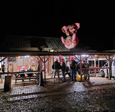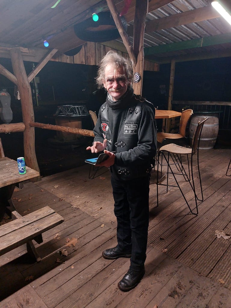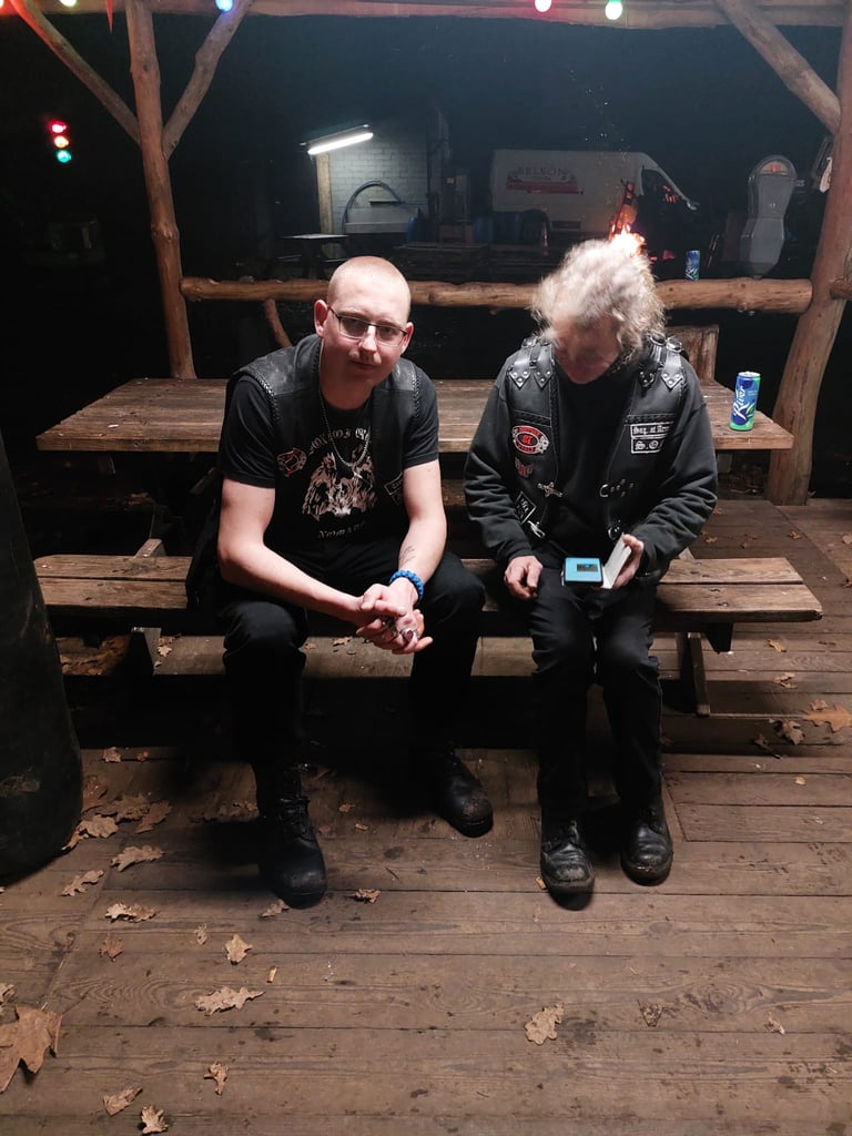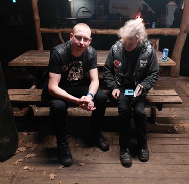 De avond bij Wild Side was een bijzondere ervaring, ondanks de hobbels die we onderweg tegenkwamen. Na een foute afslag raakten we met de auto vast in het bos door de hevige regen, maar gelukkig wisten we onszelf weer eruit te redden. Eenmaal aangekomen, werden we verwelkomd door vrienden en een sfeervol kampvuur dat het gras verwarmde. De geluiden van metal classics vulden de lucht en zorgden voor een energetische sfeer. We genoten van gezellige en diepgaande gesprekken, terwijl we het feest in "Porky's Place" voortzetten. De combinatie van goede muziek, heerlijke gesprekken en het samenzijn met bekenden maakte de avond onvergetelijk.