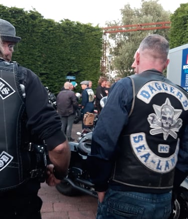 Gezellige bijeenkomsten met motorliefhebbers en vrienden.